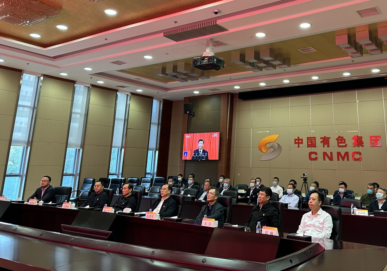10月16日上午10時(shí),中國(guó)共產(chǎn)黨第二十次全國(guó)代表大會(huì)在北京人民大會(huì)堂隆重召開(kāi),習(xí)近平總書(shū)記代表十九屆中央委員會(huì)向大會(huì)作報(bào)告。中國(guó)有色集團(tuán)黨委召開(kāi)理論學(xué)習(xí)中心組擴(kuò)大會(huì)議,集團(tuán)公司領(lǐng)導(dǎo)班子成員、高級(jí)管理人員、各部門(mén)主要負(fù)責(zé)人、樓內(nèi)出資企業(yè)黨政主要領(lǐng)導(dǎo)在集團(tuán)總部大廈集中收看了報(bào)告直播,集團(tuán)總部和各級(jí)出資企業(yè)組織廣大干部職工同步開(kāi)展了收聽(tīng)收看。