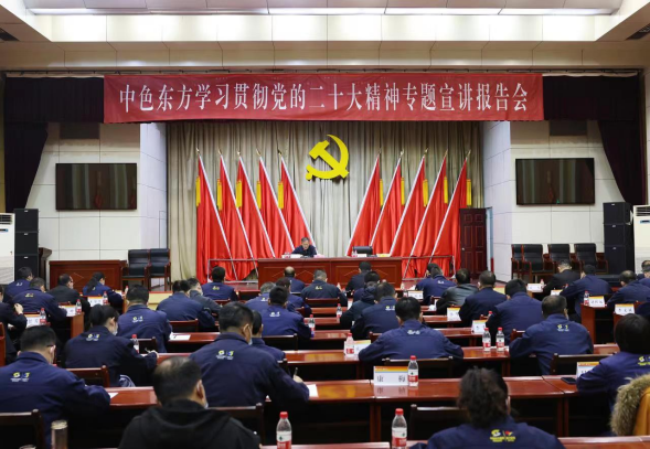 為深入學(xué)習(xí)宣傳貫徹黨的二十大精神,根據(jù)寧夏自治區(qū)黨委統(tǒng)一部署,11月17日,自治區(qū)宣講團成員、自治區(qū)政協(xié)副主席馮志強在中國有色集團出資企業(yè)中色(寧夏)東方集團有限公司(簡稱:中色東方)作黨的二十大精神專題宣講報告。中色東方黨委書記、董事長李春光主持,石嘴山市政協(xié)主席魏和清出席會議。