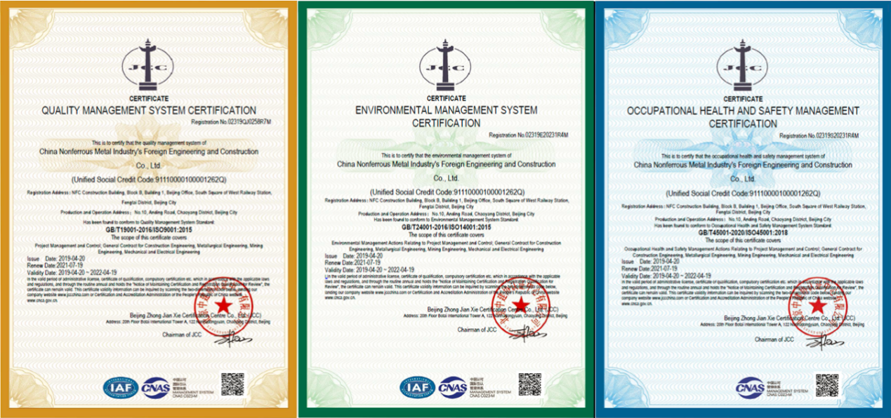 From April 6th to April 8th, 2022, Beijing Zhong Jian Xie Certification Centre Co., Ltd (JCC) conducted the 2021-2022 quality, occupational health and safety & environmental (QHSE) management system audit to NFC. After three days of full coverage audit of all NFC departments, JCC audit team highly affirmed the operation effectiveness of QHSE management system of NFC. The audit team unanimously agreed to recommend NFC to pass the audit. Through JCC internal review and approval, NFC successfully passed the re-certification audit of QHSE management system, and continuously maintained the qualification of QHSE management system certification.
